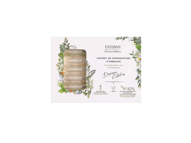 エステバンは旅で出会った感動の記憶を目に見えない香りやデザインで表現し続けています。その感動や喜びが詰まった香りの中でも特に人気の香りを、手軽にご体験いただけるミニルームスプレーコフレをご用意いたしました。【セット内容】各2.5ML×5種 ●アロエフラワー●オレンジ&グリーンティー●レモングラス&ミント●サマージャスミン●フレシュールリネン