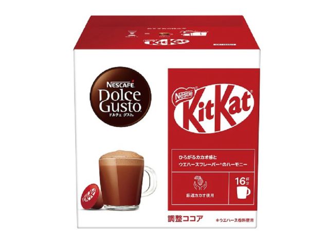 キットを、口にしよう。「キットカット」の味わいを淹れたてドリンクで!あの「キットカット」のカカオ感とウエハースフレーバーが楽しめるココアを、カプセル式コーヒーメーカー「ネスカフェ ドルチェ グスト」で