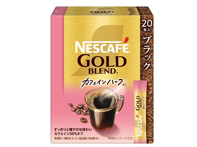 微粉砕したコーヒー豆の粒を包み込むネスカフェ独自の「挽き豆包み製法」で、淹れたての上質な香りとマイルドかつすっきり軽やかな味わいの「ネスカフェゴールドブレンド」のカフェインハーフコーヒーです。