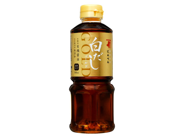 国内産鰹節、さば節、宗田鰹節、北海道産昆布の合わせだしに有機醤油を加え、淡色で上品な風味の白だしに仕上げました。化学調味料、着色料無添加。