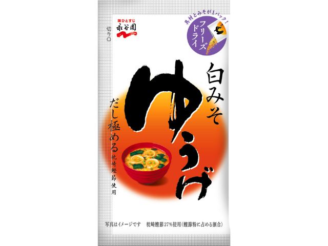 まろやかな味わいの白みそを使用した、粉末タイプの「ゆうげ」1袋です。粉末タイプだから、サッとお椀に空けられます。
