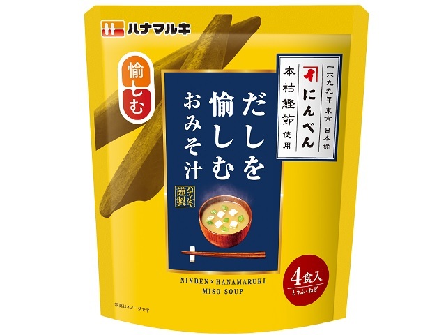 1699年(元禄12年)の創業以来、東京日本橋の地で鰹節やだしを通じ本物の味を伝承してきた「にんべん」の本枯鰹節を贅沢に使用。具材の豆腐とねぎのサイズと量をアップしました。