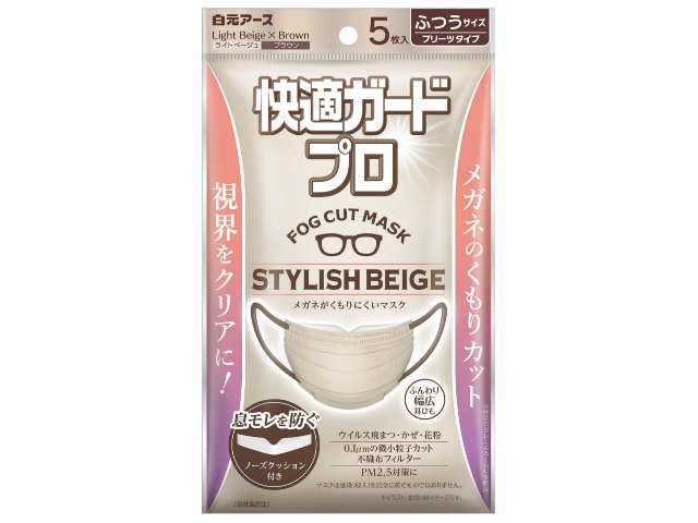 白元アース 快適ガードプロ プリーツタイプ ふつうサイズ スタイリッシュベージュ 5枚x1