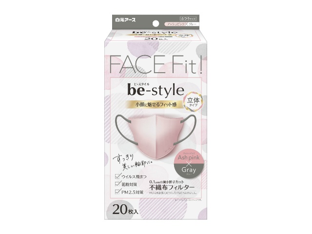 白元アース ビースタイル 立体タイプ ふつうサイズ アッシュピンク×グレー20枚x1