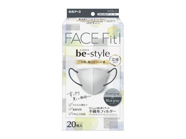 白元アース ビースタイル 立体タイプ ふつうサイズ シルバーグレー×ブルーグレー20枚入 x1