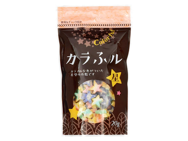 常陸屋本舗オリジナルの星の麸に、カラフルな色彩をプラスしました。 中身は「ピンク&イエロー」「グリーン&イエロー」「パープルふちどり」の3種類がランダムに入っています、 いつものお食事をより楽しく
