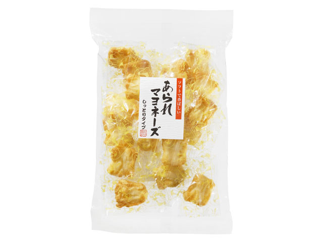こんがりと焼いたあられに液状のマヨネーズをふんだんに染み込ませました。