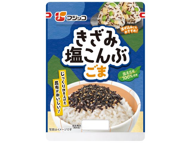 香ばしいごまときざみ塩こんぶのふりかけ。塩こんぶの刻んだタイプ、袋入りタイプです。うま味たっぷりの塩こんぶを丁寧に刻み、ごまを合わせました。