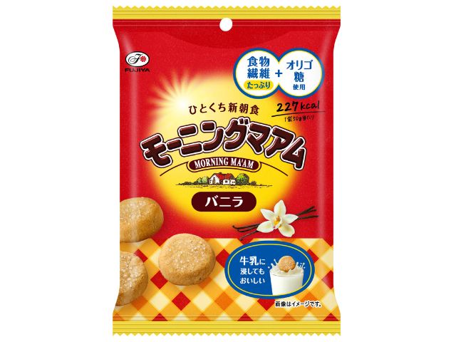 カントリーマアムの最大の特徴である外はサックリ中はしっとりの2層構造は残しつつ朝食からでも食べやすいように天面に砂糖をかけた食物繊維、オリゴ糖入りのひとくちサイズで食べやすく、持ち運びにも便利な小袋タイプです。