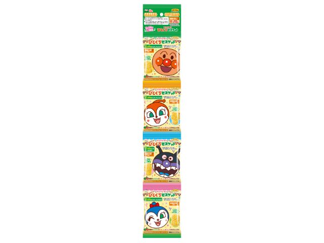 人気の駄菓子です。国産小麦使用、国産の野菜とくだもの(かぼちゃにんじんりんご)使用、卵不使用の、やさしい甘さのアンパンマンビスケット。お出かけ時のおやつや配り菓子としても使い勝手の良い4連タイプです。