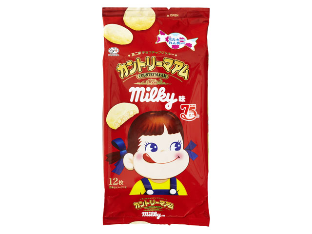 ミルキー味のカントリーマアムが期間限定で初登場!ミルキーで使用されているこだわりのれん乳と牛乳を生地に練り込みホワイトチョコチップを組み合わせた、ミルクのコク深い味わいが楽しめる「ミルキー」味のルックです。