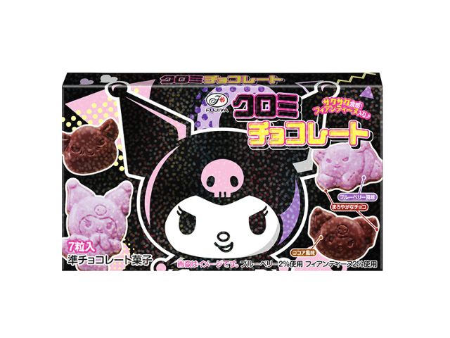 クロミをイメージした黒と紫の見た目、大小様々な大きさと可愛い表情のクロミを象った異なる2種の味わいが1箱で楽しめるクロミ好きのためのチョコレート