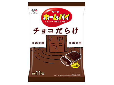 チョコパイ生地とチョコクッキー生地を重ね合わせたチョコの風味と繊細な食感が楽しめるパイクッキー生地に自家製ミルクチョコを全面にたっぷりまとわせた、チョコを堪能できる「チョコだらけ」なホームパイ。