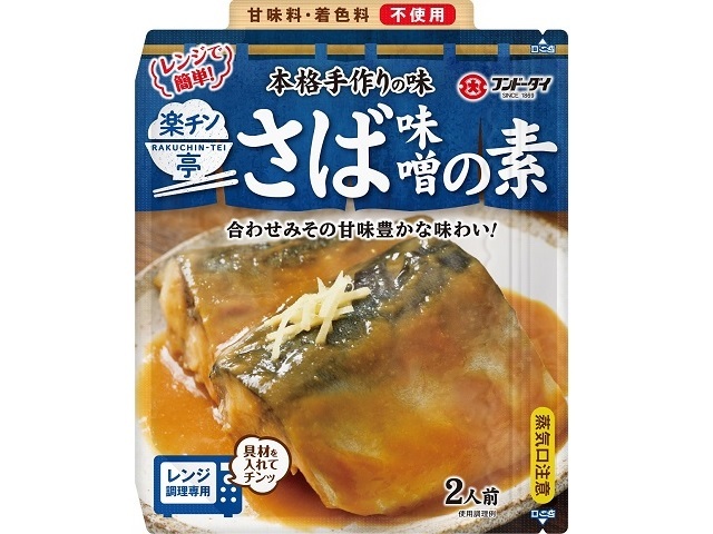 さばの切り身を袋に入れてチンするだけで味噌煮ができるレンジ専用の調味液です。フンドーダイの味噌と「赤酒」を使い、九州向けの甘口に仕上げました。甘味料、着色料不使用です。