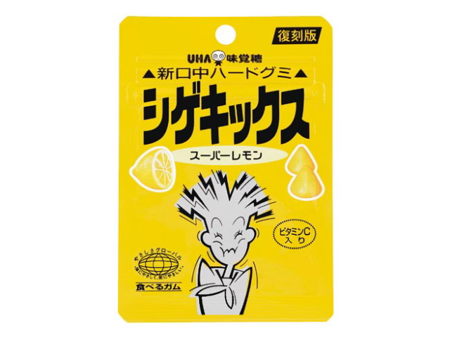 進化するシゲキックス、ハードな新食感! !強烈なすっぱさとハードな食感で大好評のシゲキックスシリーズ。元祖シゲキックスの復刻版パッケージとなります。懐かしのパッケージとともに、ハードな噛みごたえと強烈スッパレモン味で気分をリフレッシュ! !ビタミンC入りです。