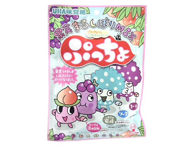 ぷっちょの定番フレーバー、コーラ味とソーダ味に加え、人気の高いフルーツフレーバー、りんご味とぶどう味の全4種の味を楽しめるアソートです。ぷっちょを新規一転リニューアル。