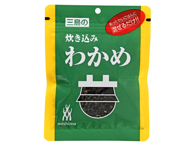 混ぜ込み用のわかめごはんの素です。炊き上がったごはんに混ぜるだけで、手軽に磯の風味豊かなわかめごはんができあがります。