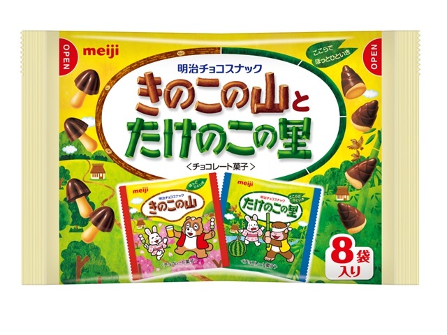 きのことたけのこを模したかわいい小粒形状のチョコスナックのアソート袋なので、小分けで使いやすくシェアもしやすいです。