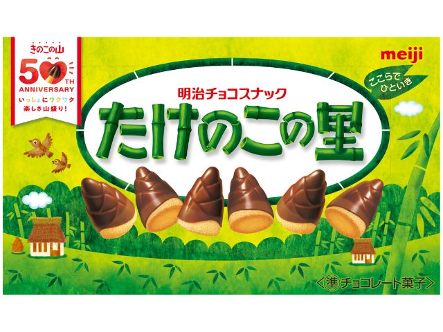 たけのこを模したかわいい小粒形状のクッキーとチョコレートを組み合わせたチョコスナックなので、幸福感や楽しさを感じられます。