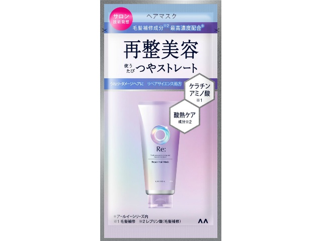 究極の艶とまとまり髪を目指すアールイーシリーズ。うねり・ダメージヘアも使うたび素髪から美しくつやめくストレート髪へ。毛髪補修成分※1最高濃度※2配合。蓄積ダメージも集中補修し、毛先までまとまるツヤ髪へ整えるヘアマスク1DAYトライアルタイプ。※1レブリン酸 ※2アールイーシリーズ内
