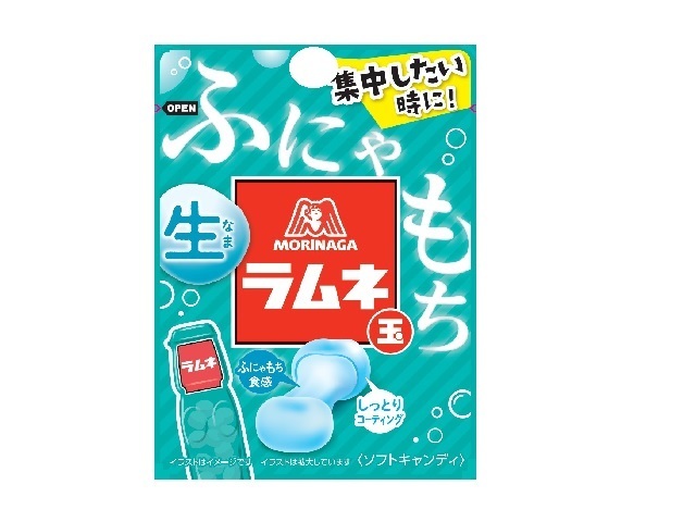 生ラムネ風のしっとり糖衣で包んだふにゃもち食感のソフトキャンディです。ぶどう糖配合で、森永ラムネの味が楽しめる一粒です。