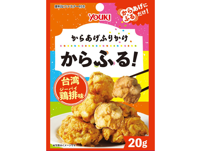 五香紛に加え、数種類のスパイスをブレンドした、台湾屋台風の味を楽しめます。からあげにかけるだけ、からあげ専用ふりかけ『からふる』