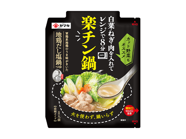 具材を入れてレンジでチンするだけで簡単に食べられる1人前の鍋つゆです。調理中は手がかからないので時間を有効活用できます。軍鶏系地鶏のうま味に高知県産生姜を効かせ、コクのある地鶏だし塩鍋つゆに仕上げました。