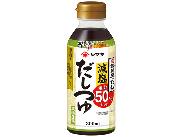 塩分を50%カットした汎用性の高い3倍濃縮つゆ。ユーザーの生活実態に適した300ml容量。