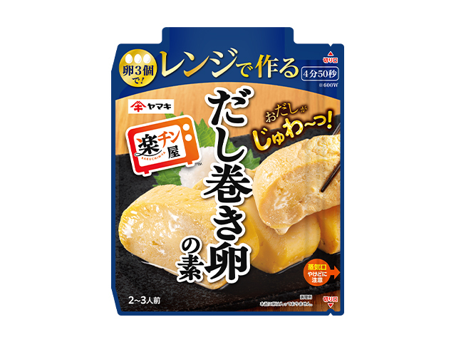 卵を入れてレンジでチンするだけで簡単に食べられる、白だし仕立てのだし巻き卵の素です。鰹だしを効かせたおだしがじゅわ〜っとあふれ出す、本格的な味わいです。