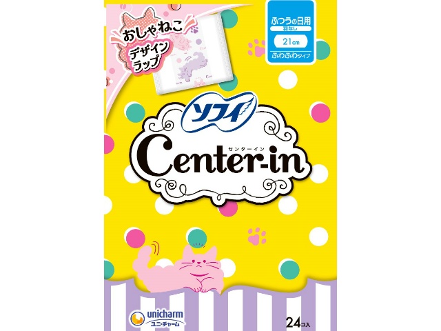 ふわふわ感覚で肌にやさしく、真ん中でスピード吸収。つけるとき前後が分かりやすい猫デザインと持ち運びでも可愛いおしゃねこデザインラップを新搭載!