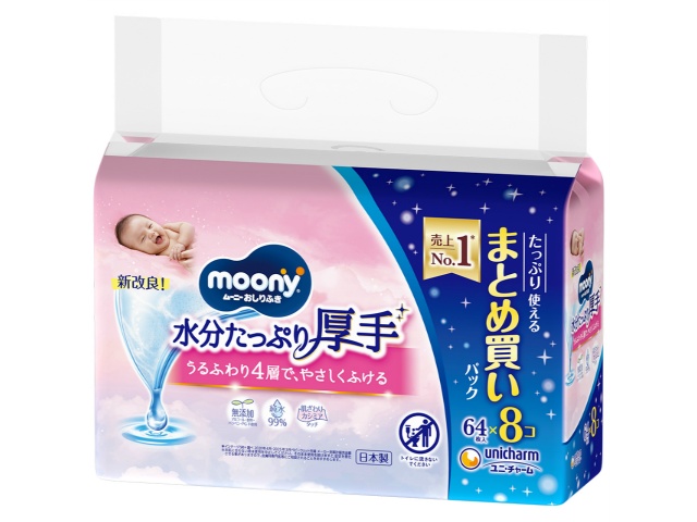 ユニ・チャーム ムーニーおしりふき水分たっぷり厚手詰替64枚×8x1