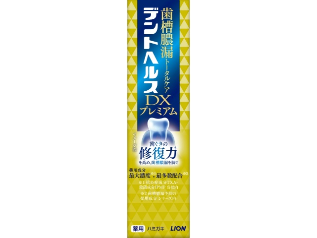 歯ぐきの修復力を高め、はれ・出血を伴う歯槽膿漏を防ぐとともに、11の効能で歯ぐきと歯をトータルケアする薬用ハミガキ●歯槽膿漏予防成分シリーズ内最多数配合・GK2が歯ぐきの炎症の元になる老廃物の蓄積を抑え、炎症を抑制・ビタミンEが歯ぐき細胞を活性化し、組織修復・TXAが歯ぐきの腫れ・出血を抑制・塩化Naが歯ぐきをひきしめる●薬用成分(IPMP・TXA)最大濃度配合*当社内●11の効能でトータルケア