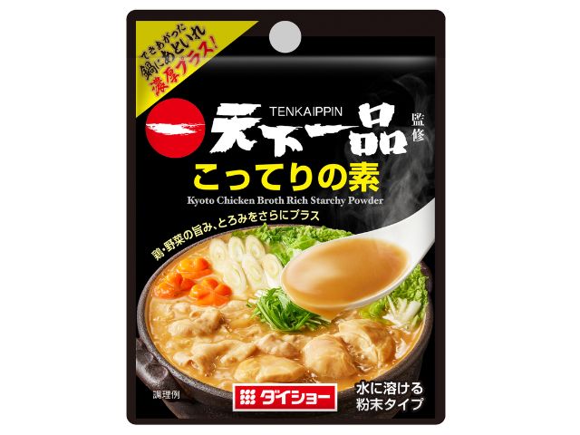 「天下一品」監修のもと、看板商品「こってり」の味わいを存分に楽しめる、あと入れ”こってりの素”が完成できあがった鍋に加えるだけで鶏野菜の旨み、「こってり」特有の濃厚感がプラスされてさらにおいしさを引きたてます。