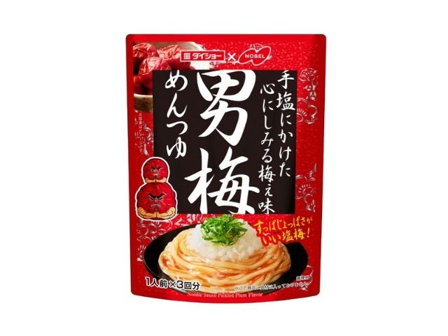 「男梅」の本格的で濃厚な梅干しの味わいを再現した、心にしみる梅ぇ味のめんつゆです。かつお・昆布の旨味を加えて生まれた、塩味・酸味・旨味・甘味のバランスが絶妙な唯一無二の男梅めんつゆをお好みの麺にかけてお召し上がりください。