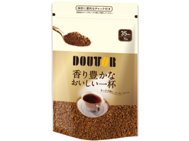 ドトール監修。香り豊かなフリーズドライコーヒーです。チャック付きの袋タイプ。