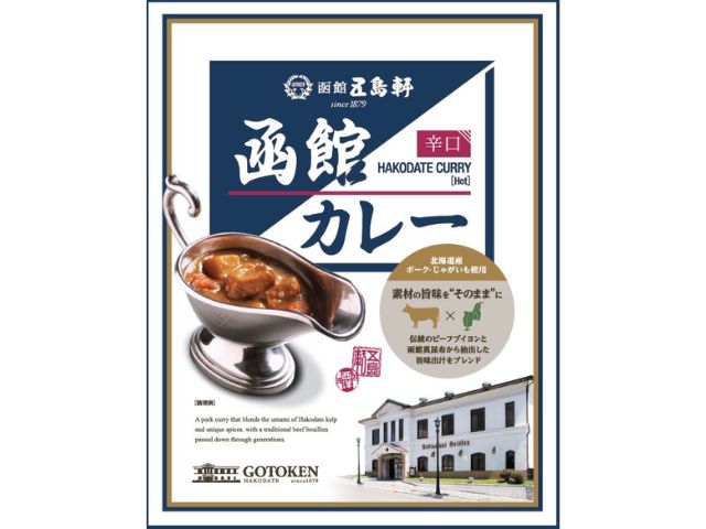 老舗洋食店五島軒の賄いレシピを基に北海道産の豚肉と国産の野菜(玉葱、じゃがいも、人参)を本格的ソースでじっくり煮込んだ手作り風辛口カレーです。