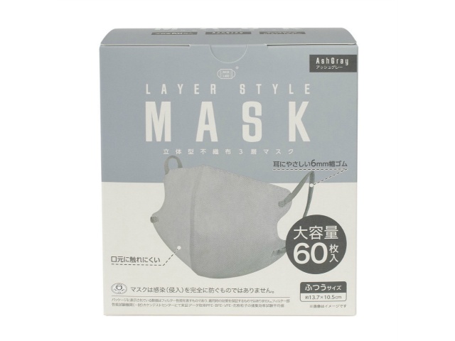 富士 レイヤースタイルマスク60枚入アッシュグレーx1