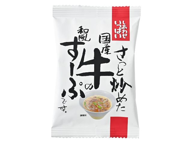 具材は全て国産のものを使用し、牛肉と白ねぎはさっと炒めて作りました。旨味のポイントはかつおを3種類独自ブレンドし、しっかりと旨味を引き立たせました。かつおと昆布の出汁が際立つ、和風の味わいのスープです