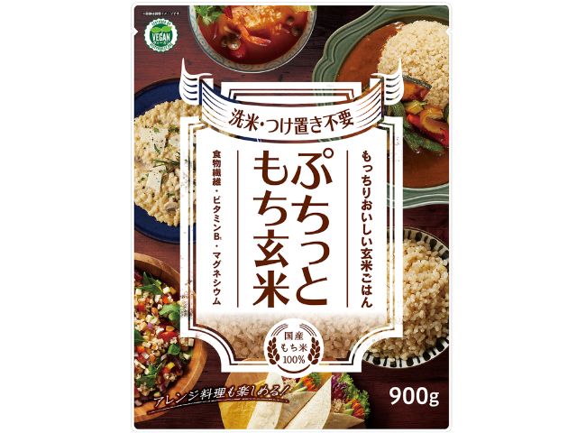 「ぷちっともち玄米」は玄米特有のにおいを軽減し、栄養はそのままに、炊飯器やお鍋で簡単に短時間で調理できるよう仕上げています。ぷちっともち玄米ならではの「ぷちっ」と「もちっ」とした食感と、アレンジのしやすさが特徴です。