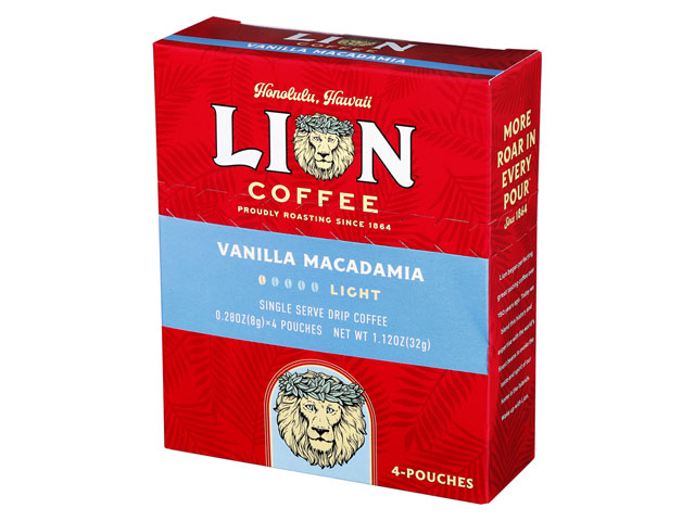 フレーバーコーヒーの中で、日本でもハワイでも、常にNo.1の売上を誇っているライオンバニラマカダミアナッツ。浅めに挽かれたコーヒーに、バニラビーンズとマカダミアナッツの独特な香りが、マッチします。こちらを、一杯から楽しめるシングルサーブです。