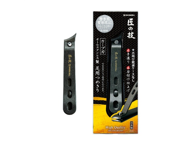 刃先をカーブさせ、先端を尖らせているので刃先が爪の隙間に入りやすく、巻き爪・変形爪のカツトに機能を発揮します