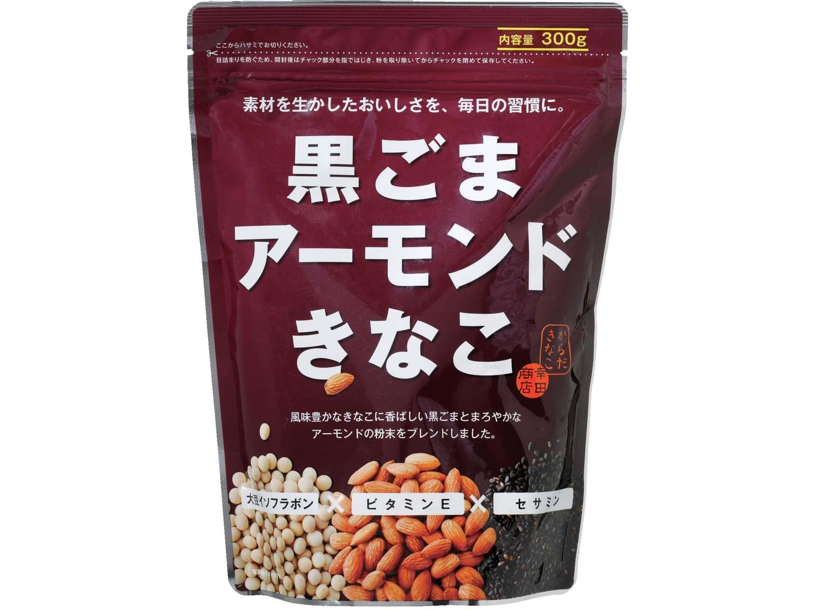 北海道産大豆を使用したきなこにアーモンドと黒ごまをブレンドしました。きな粉ドリンクに最適です。