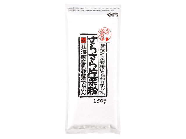 昔ながらの製法で作った片栗粉です。粒子の大きいでんぷんのみをゆっくりと低温乾燥しました。少量でとろみが持続し、特にから揚げに最適で、油が汚れにくくカラッと揚がります。