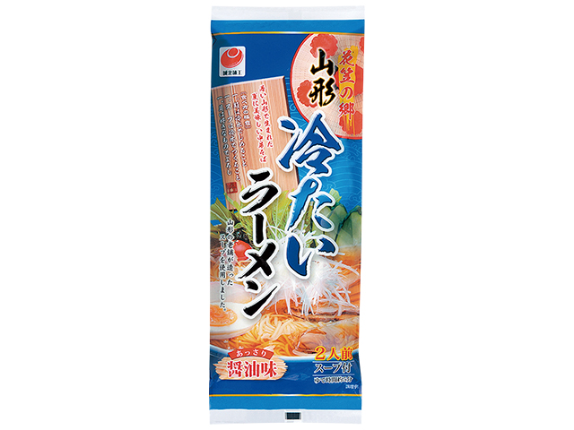 コシの強い麺と、山形の老舗が造ったあっさりとしたスープで食べる、冷たいラーメンです。