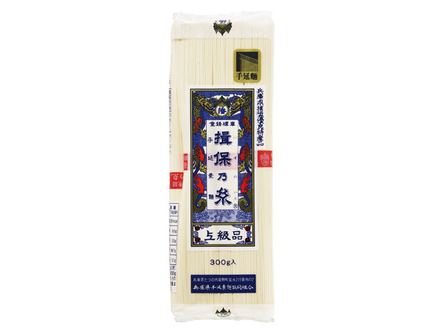 「より」と「熟成」を幾度も繰り返し、手間隙かけて製造した手延素麺「揖保乃糸」。10月末〜3月末の間に2昼夜36時間かけてつくる手延素麺の佳品です。