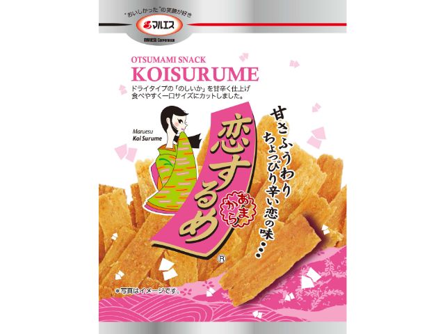 するめの胴部分のみを使用し、甘辛く仕上げたドライタイプののしいかです。食べやすい一口サイズにカットしました。恋のような、甘くてちょっぴり刺激的な大人の味をお楽しみ下さい。