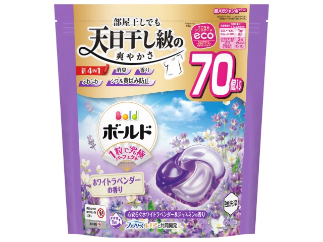 P&G ボールドジェルボール4D心安らぐホワイトラベンダー&ジャスミンの香りつめかえ超メガジャンボサイズ 70個x1