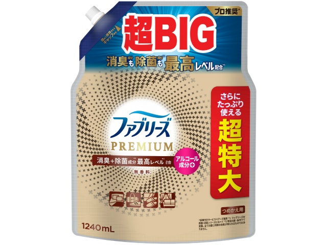 P&G ファブリーズW除菌+消臭プレミアム無香料つめかえ用4回分 1240mlx1