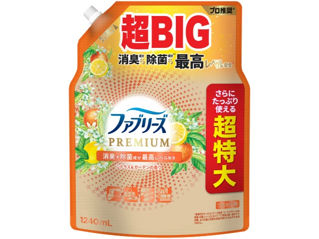 P&G ファブリーズW除菌+消臭プレミアムシトラス&ガーデンの香りつめかえ用4回分 1240mlx1