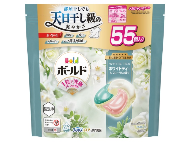 P&G ボールドジェルボール4D心弾けるホワイトティー&フローラルの香りつめかえメガジャンボサイズ 55個x1